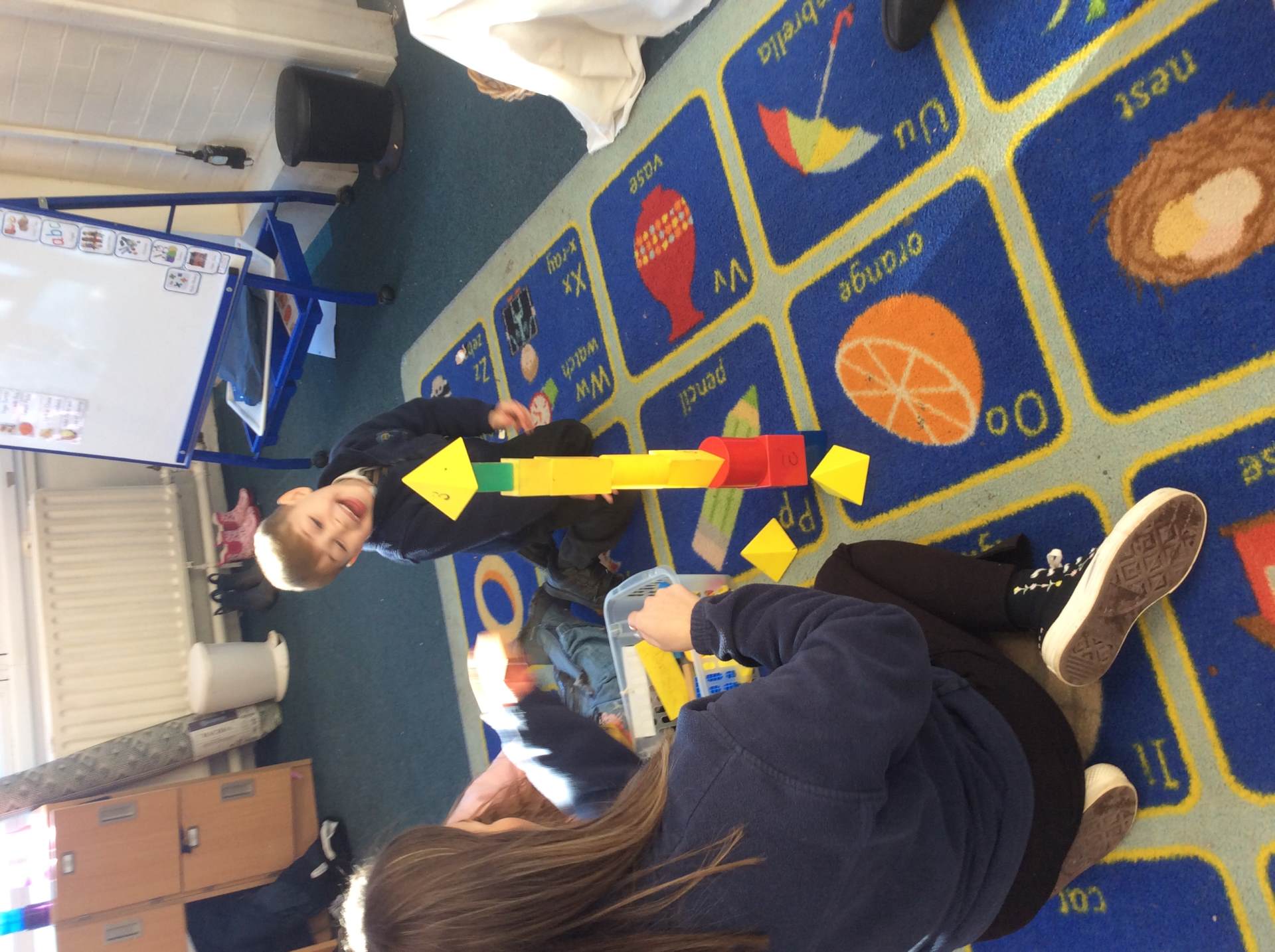 We finished the final part of our shape unit in maths this week. We sorted and grouped 2-D shapes more formally according to simple properties, including type, size and colour. We not only sorted shapes into groups ourselves but also identified how given groups of shapes had been sorted. We also created patterns using both 2-D and 3-D shapes. After completing our shape work, we moved on to place value within 20. We began learning to count to 20 using a number track.