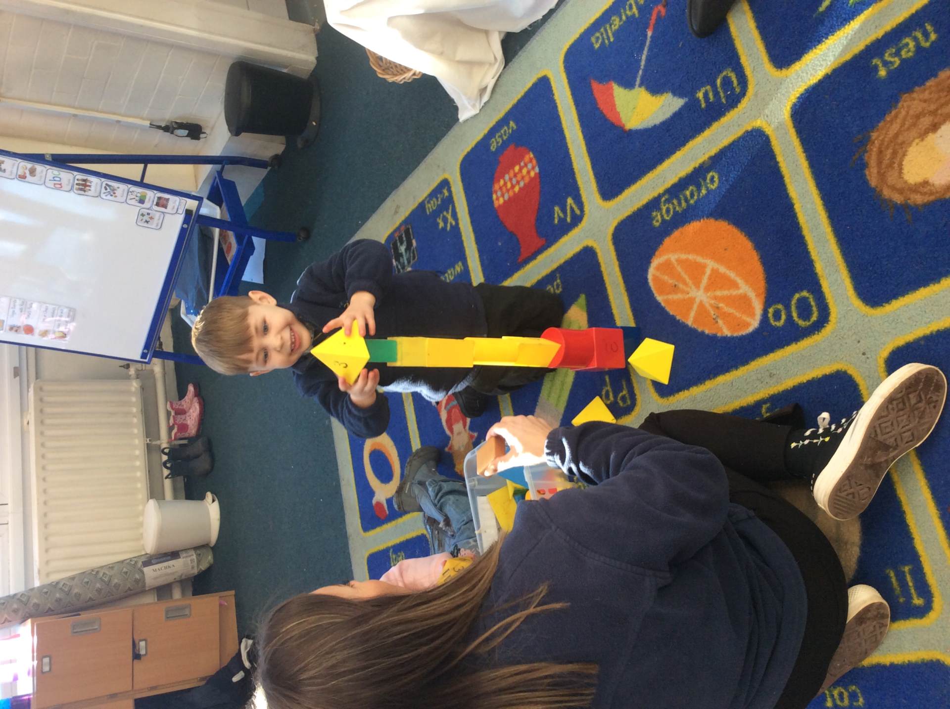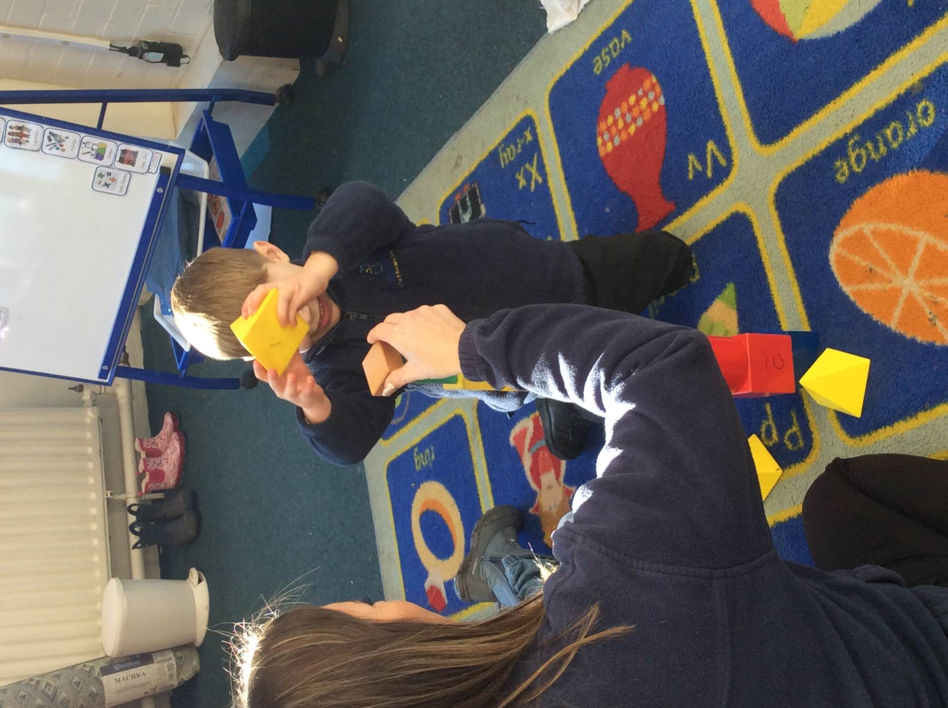 In maths this week, we focused on shape. We named simple 3-D shapes such as cubes, cuboids, cylinders, pyramids, cones and spheres. We sorted and grouped 3-D shapes more formally according to simple properties, including type, size and colour. We also named simple 2-D shapes, such as triangles, squares, rectangles and circles.