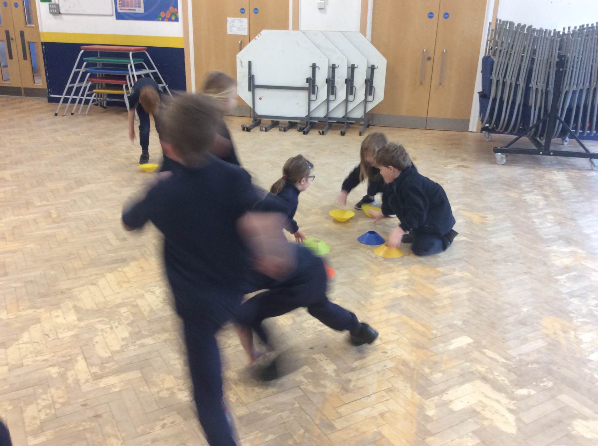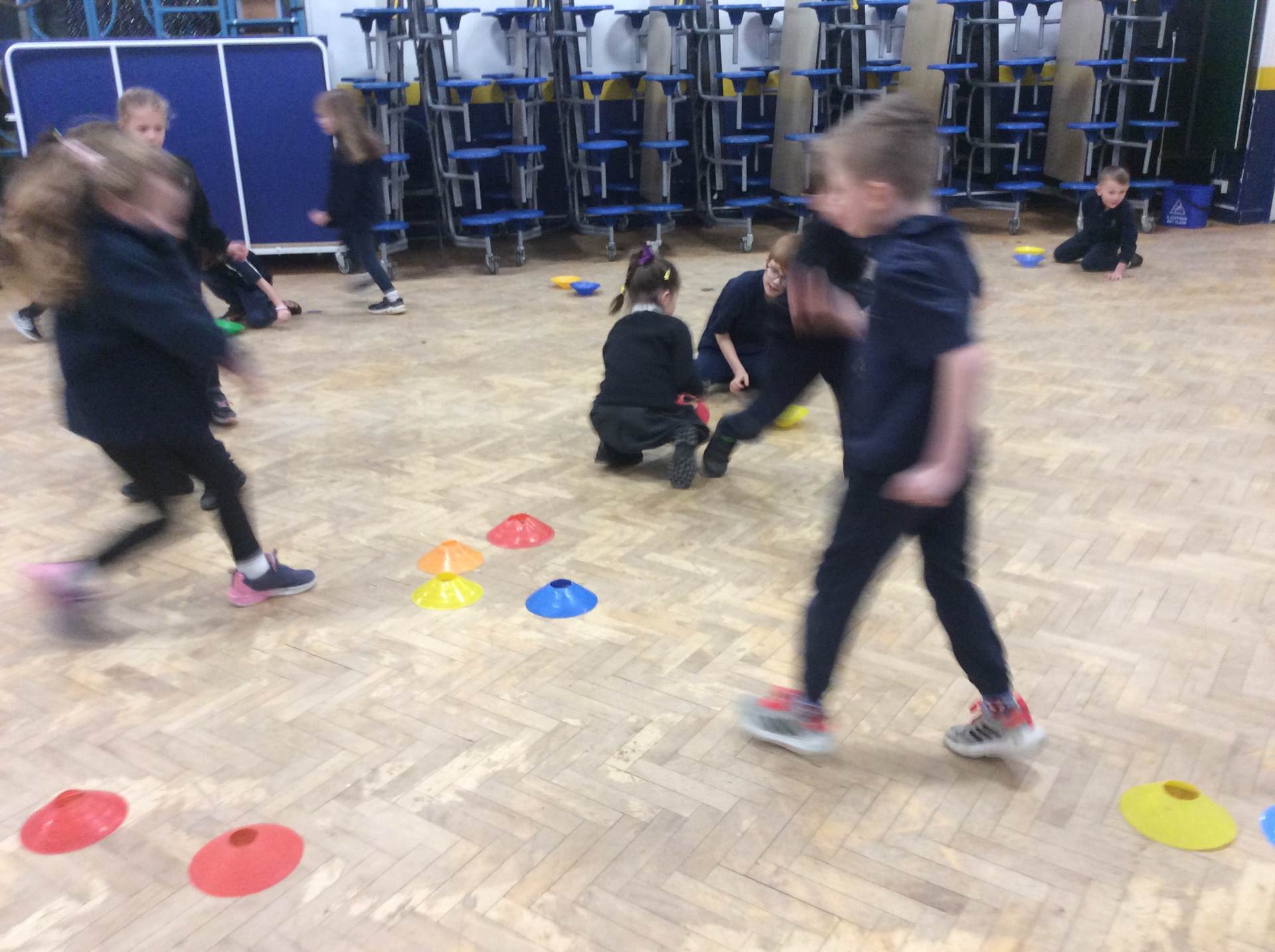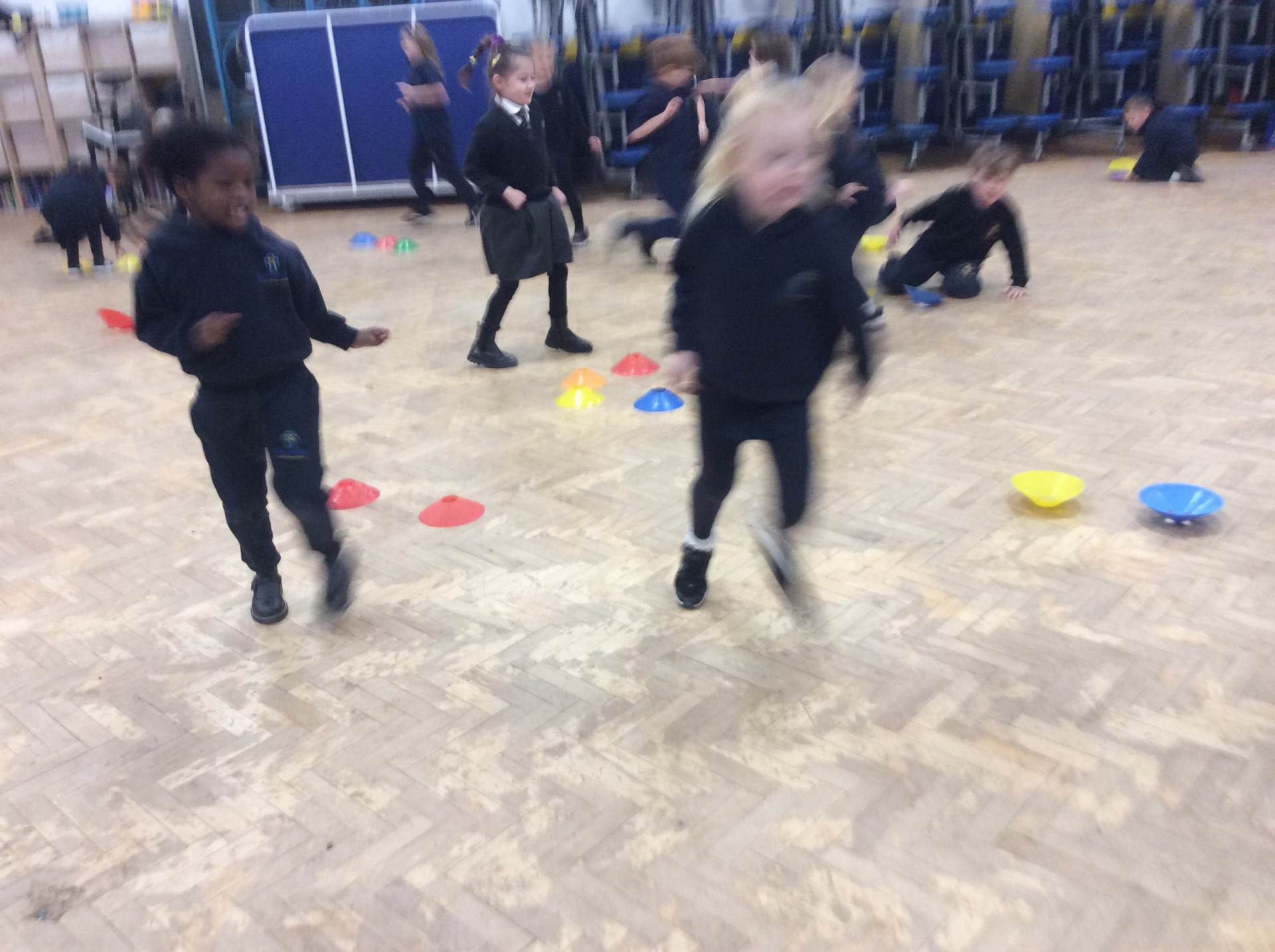 In PE, we focused on developing our ball control skills, practising how to dribble carefully and with control around cones.