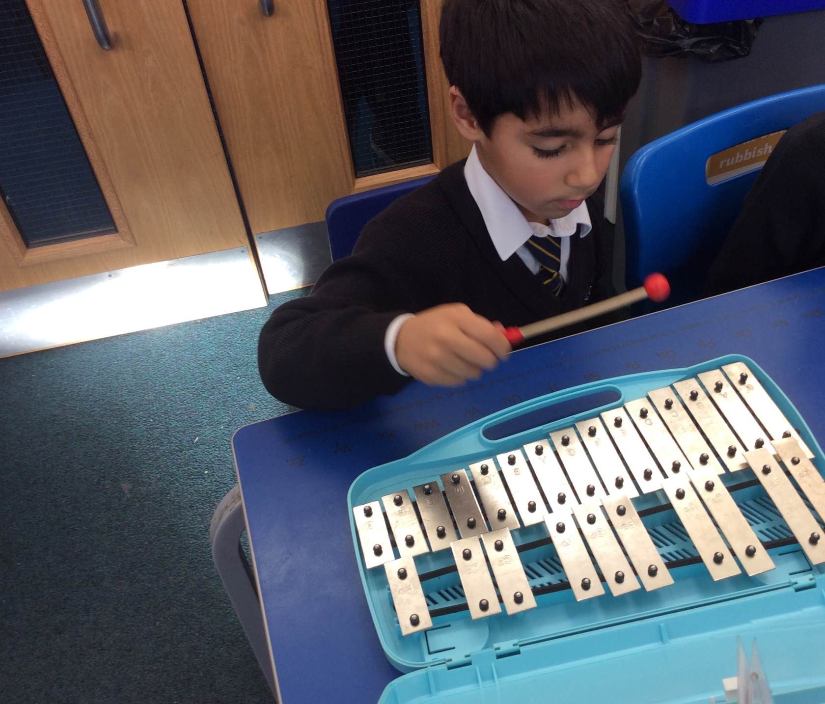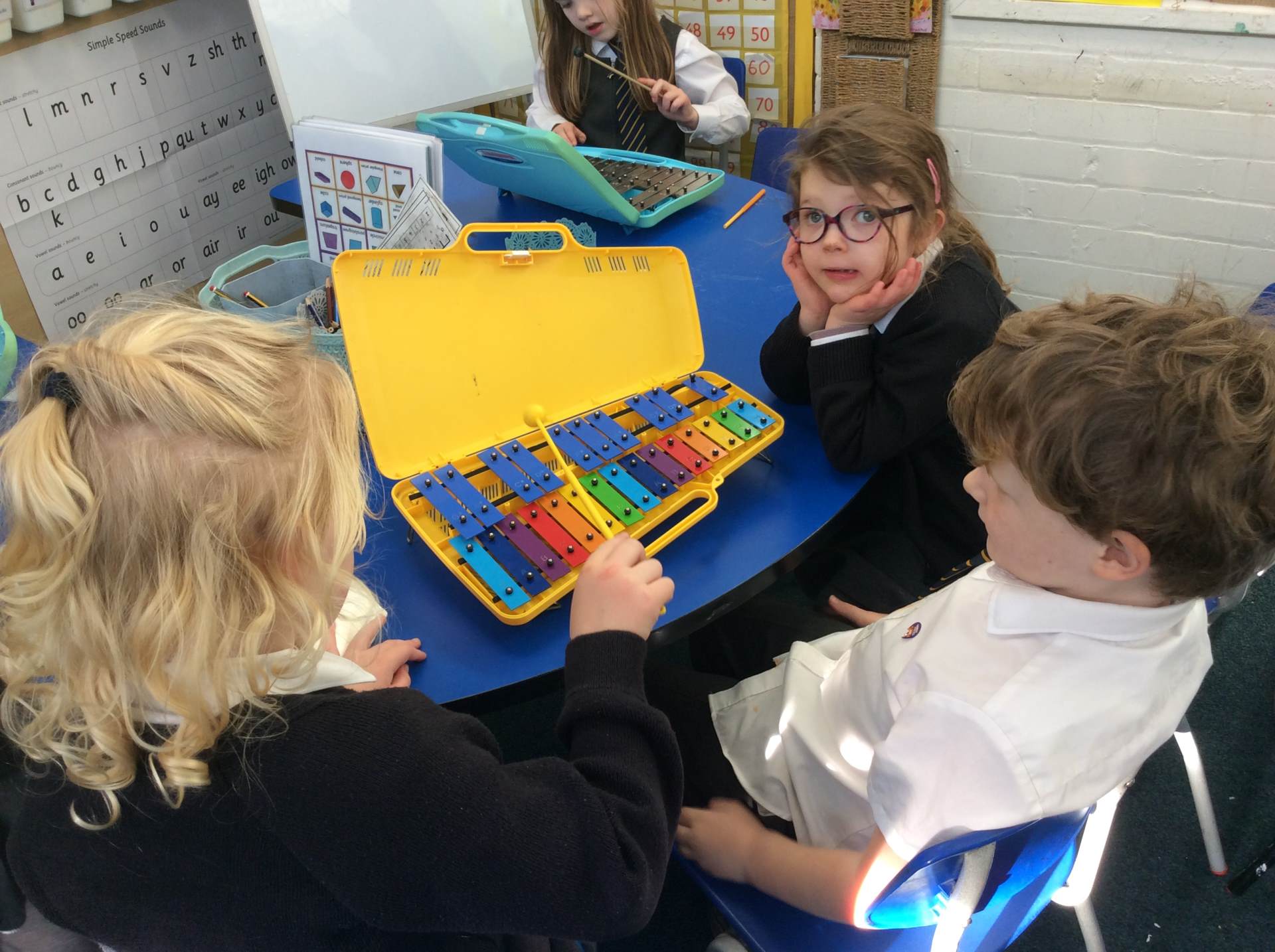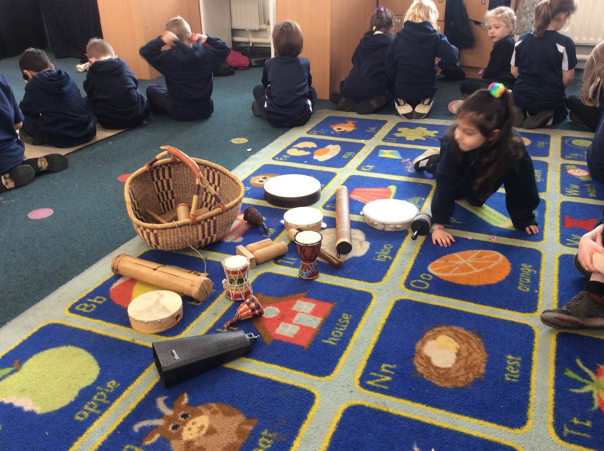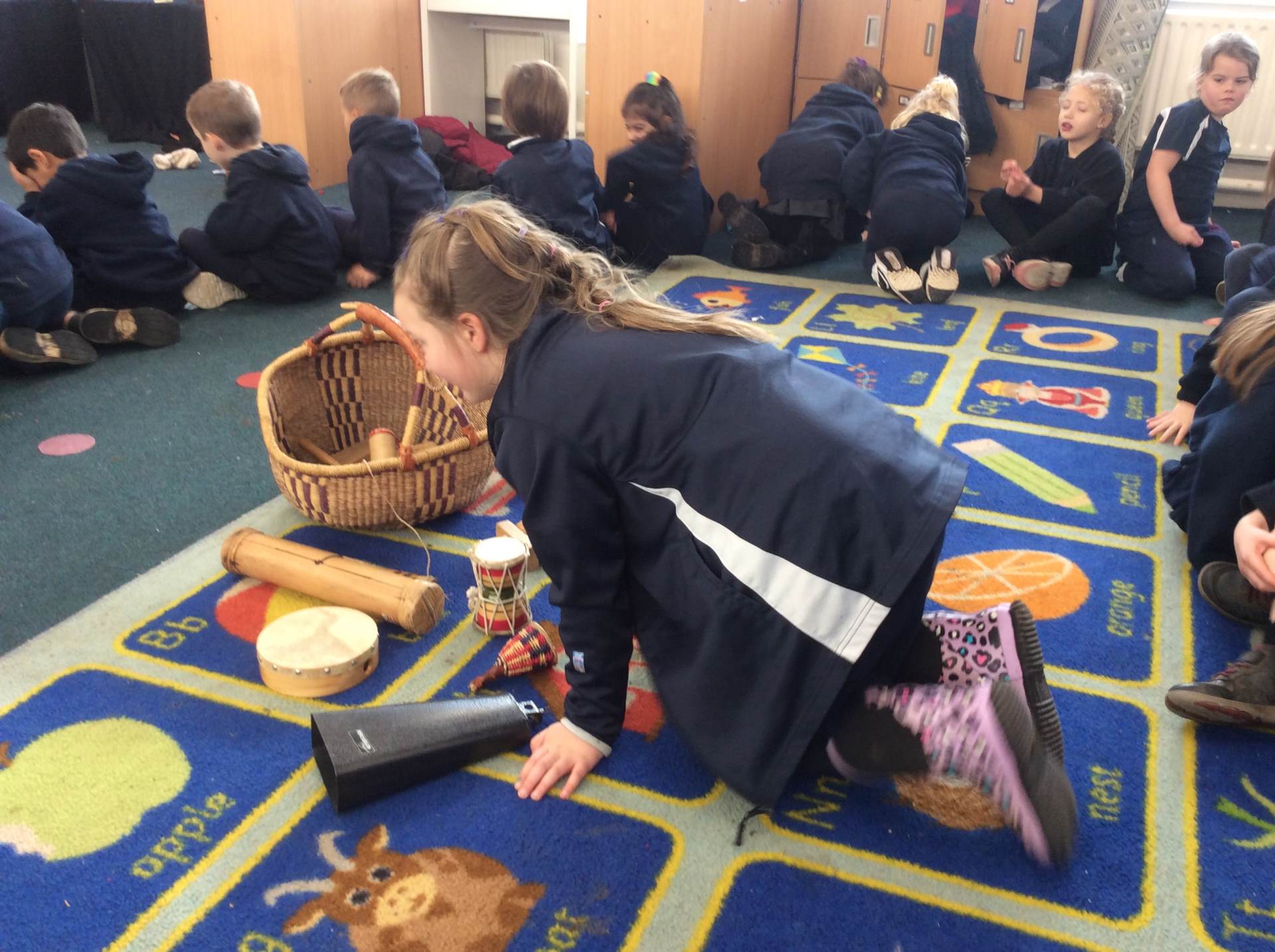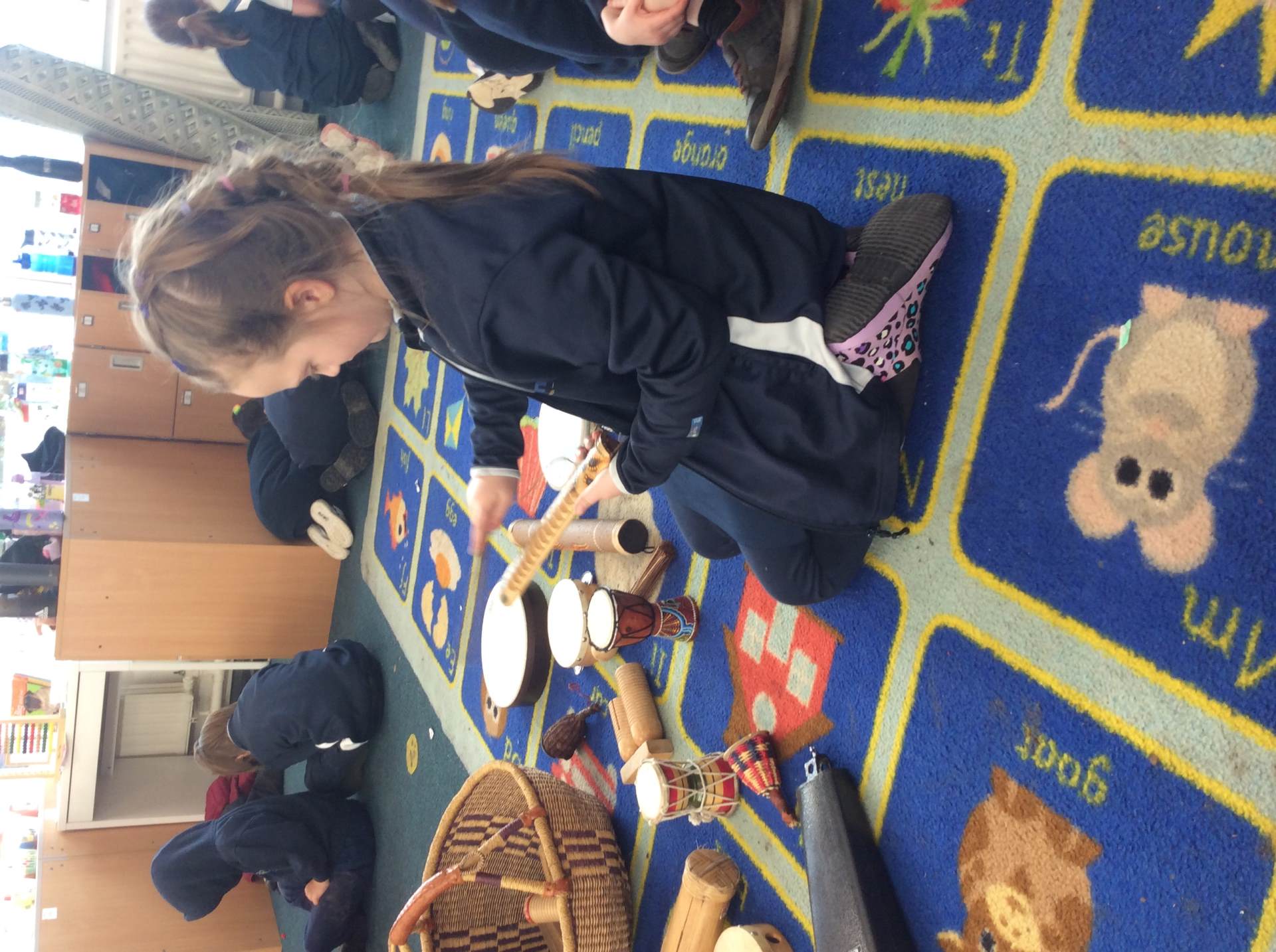 We discussed what we could hear, shared whether we liked the song, enjoyed dancing with our friends and played the glockenspiel with a partner to the song. We had lots of fun!