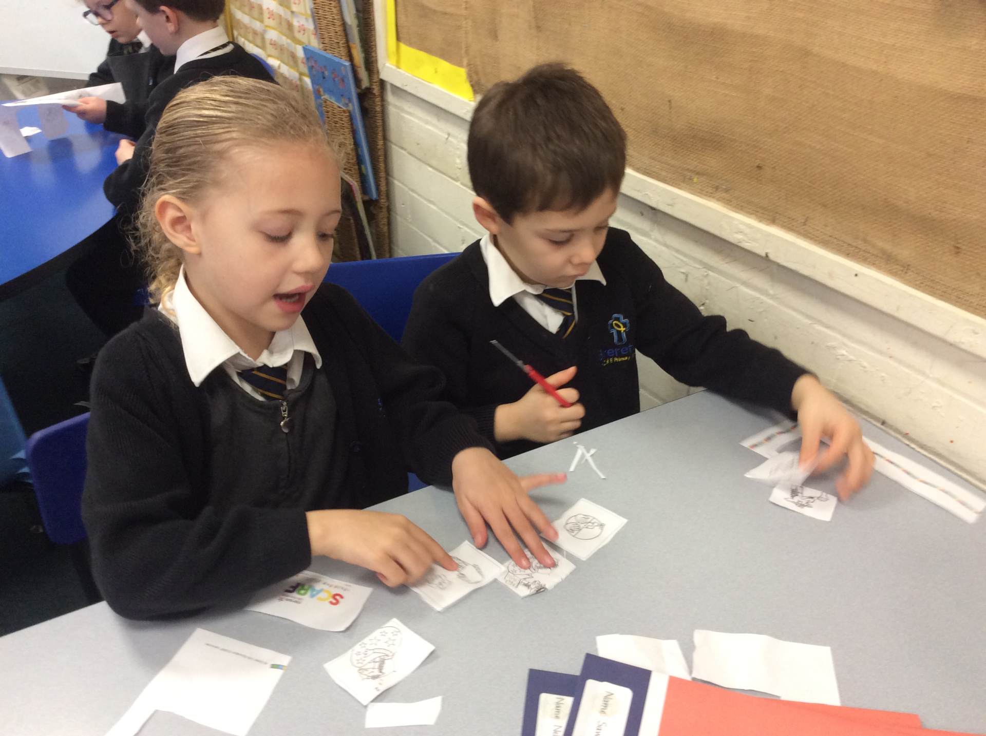 In RE, we listened to the story of The Calling of the Disciples (Luke 5: 1–11 and Luke 5: 27–28). We then imagined we were James and John and wrote a postcard home explaining the miraculous catch of fish, how we felt and why we chose to follow Jesus.