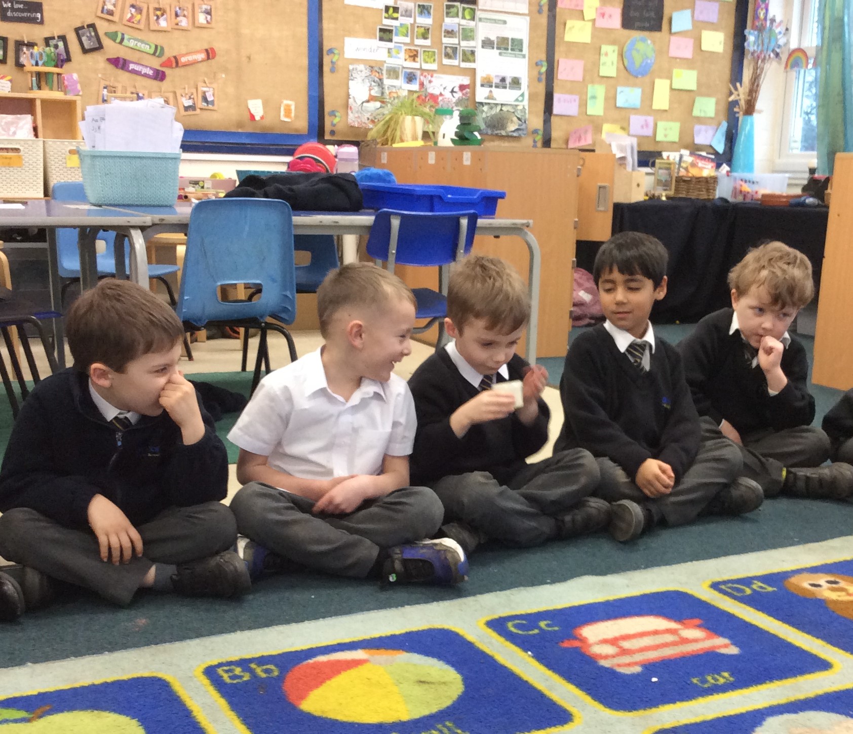 In Science, we continued our Animals Including Humans topic by investigating who might have the biggest feet in the class. The children made predictions using what they already know—for example, they might assume someone has the biggest feet because they are the tallest. They enjoyed comparing ideas and thinking scientifically about their predictions.