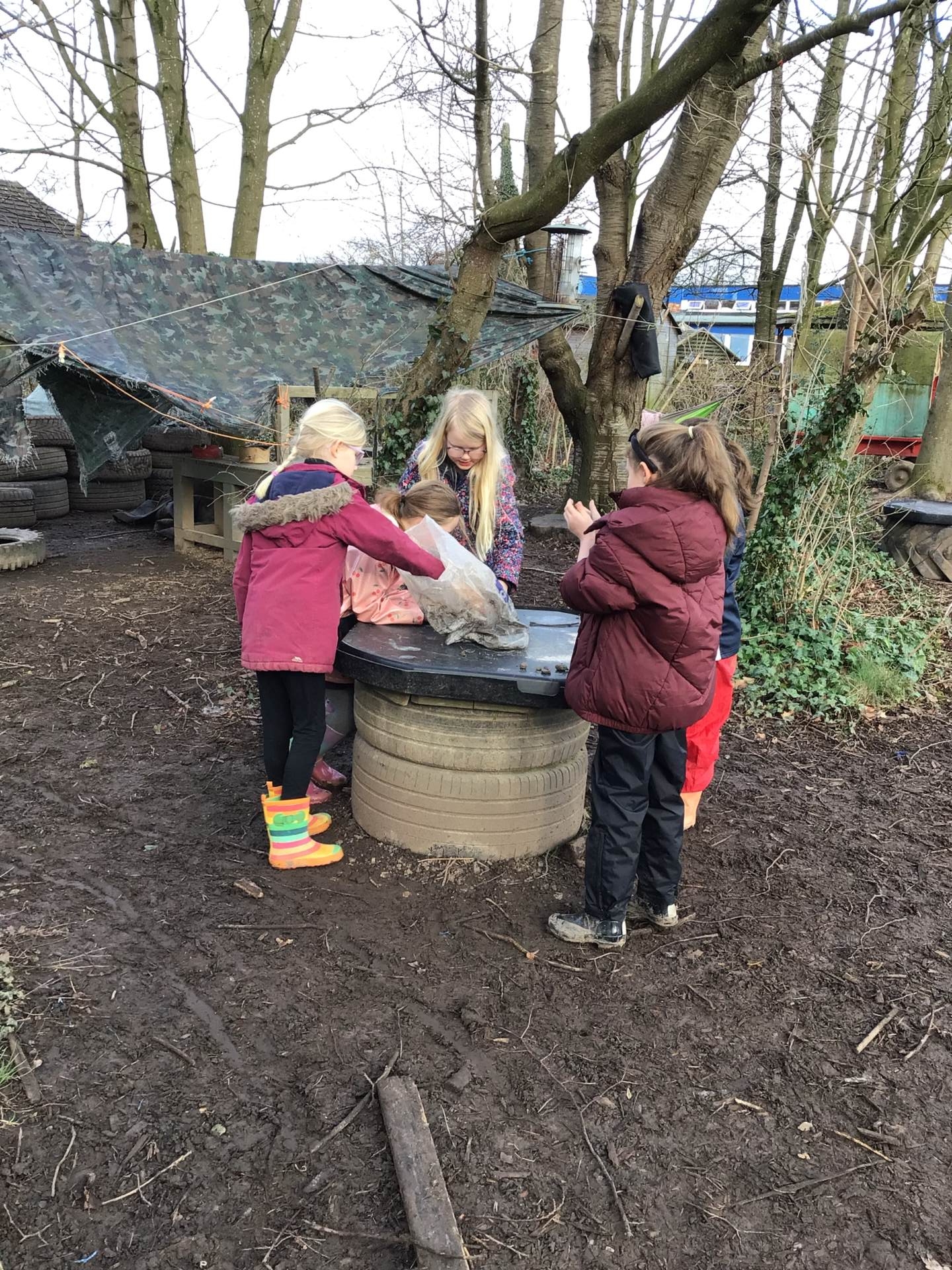 We had great fun in Forest School searching for gems. We found several beautiful gems which we thought were part of the Iron Man's eyes. Following this, we all either made characters from clay or metal objects.