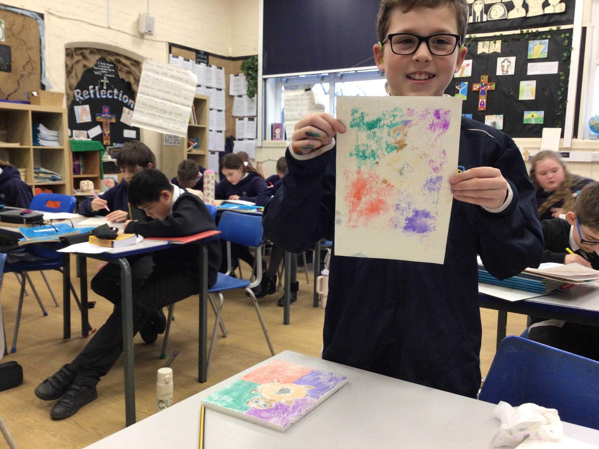 Our highlight from this week was Mrs Taylor's art lesson - print painting with water!